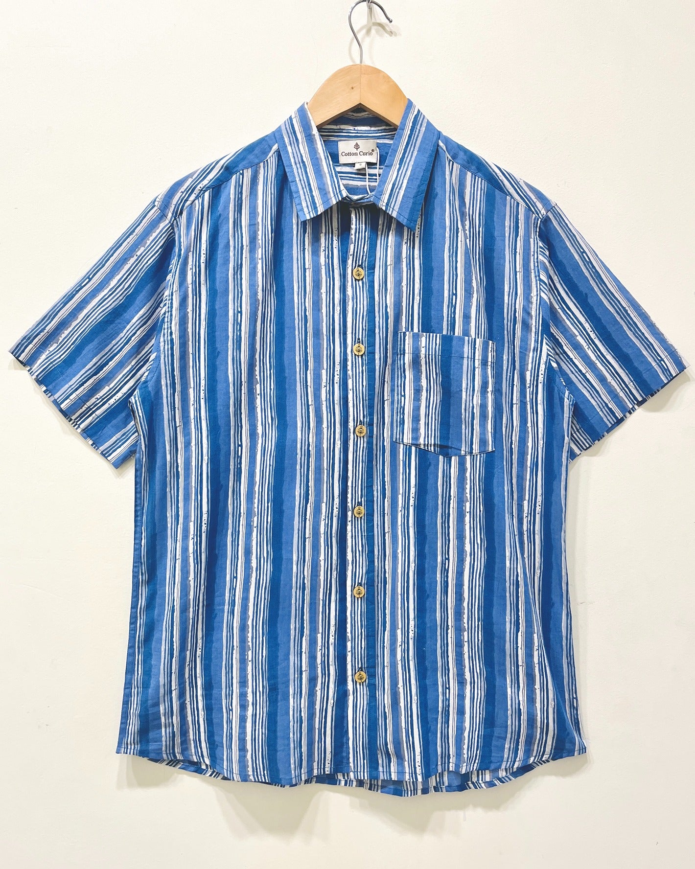 This printed cotton shirt is presented to you by Cotton Curio, A well-known brand in block print and screen print for over 3 decades. This exclusively hand-stitched shirt is made of 100% pure cotton. Wear this at your ease and the fabric is so smooth to the skin that you will love it and the attractive prints add more charm to the same.