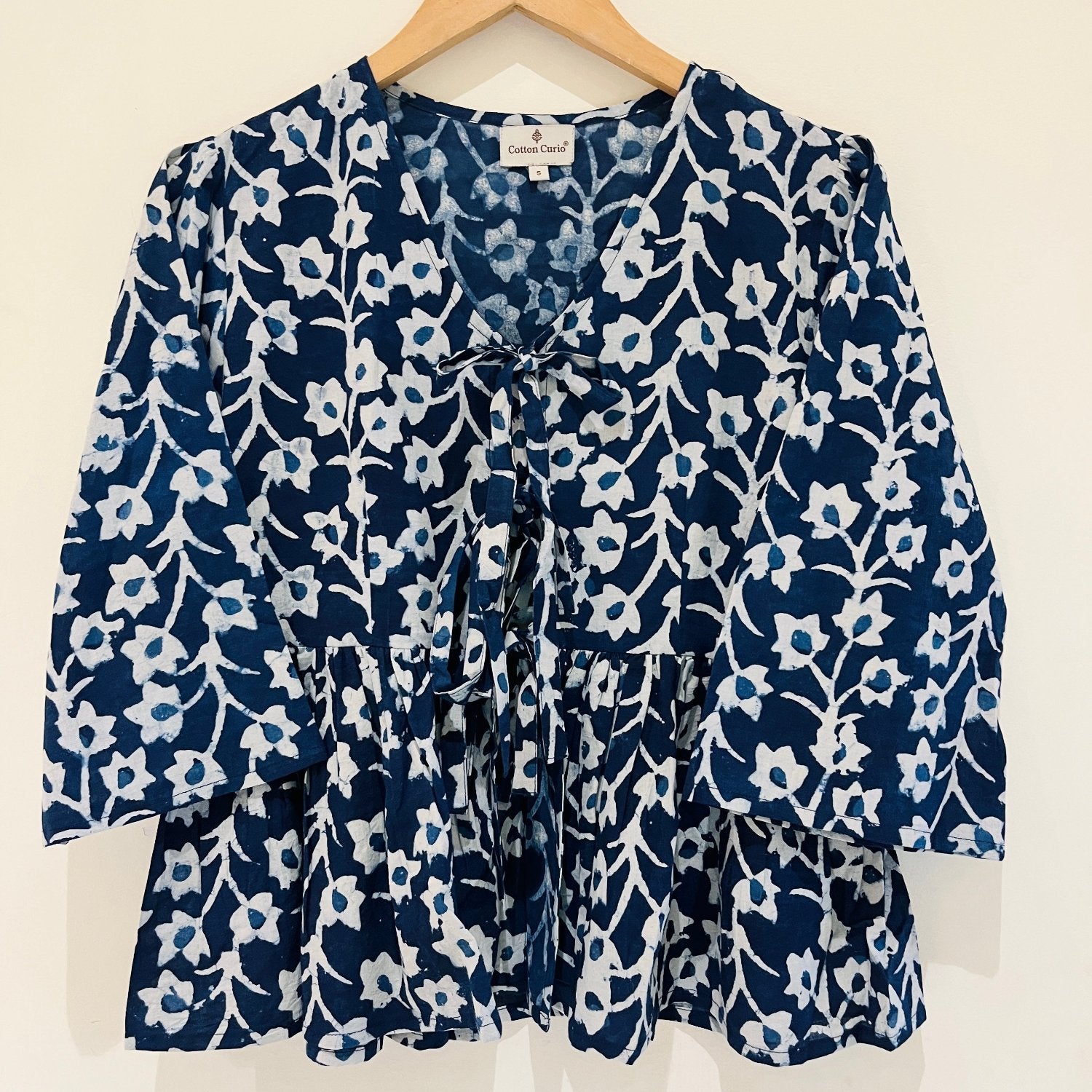 Get ready to fall in love with this super cute Natural Indigo cotton top! With its Pinterest-worthy style, it features a sweet tie-front, a cozy V neck, and adorable flutter sleeves. The length is just right at 22-25", perfect for pairing with your favorite high-waisted jeans. Each one is handcrafted with love, and it’ll be shipped to you in 2-4 days, made just for you!