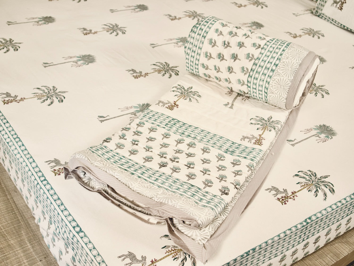 Embrace timeless elegance with our Life of Palm collection. The vibrant hue and intricate floral patterns exude classic charm. Crafted from high-quality cotton, this collection includes bedspreads, pillowcases, and quilts, adding a touch of opulence to your living space. Versatile and enduring, these pieces effortlessly blend with any decor style. For a timeless aesthetic, choose the grace of our Life of Palm collection.